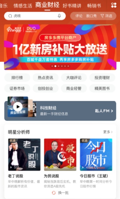 期間,記者發(fā)現(xiàn)“房多多攜平臺商戶,1億新房補(bǔ)貼大放送”的活動(dòng)宣傳已在喜馬拉雅多個(gè)頻道首頁上線,選擇與喜馬拉雅平臺跨界合作,房多多正是瞄準(zhǔn)了該平臺超6億的中產(chǎn)高知用戶,其也將是居家置業(yè)的核心人群。此次強(qiáng)強(qiáng)聯(lián)手,無論在品牌聯(lián)合營銷,還是精準(zhǔn)用戶畫像、大數(shù)據(jù)合作方面,都將為雙方帶來積極影響。