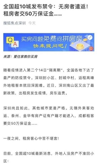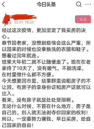 今年的疫情之下,各個(gè)城市都出現(xiàn)了“無房者遣返”的極端事件。