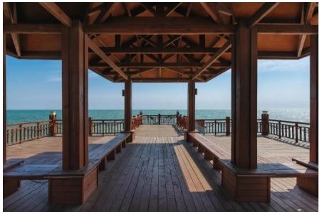 延伸入海的木棧橋,一面連著白色沙灘,一面延伸入蔚藍(lán)海水。漫步其上,置身在大海心里,感受綠意在大海的深藍(lán)中氤氳的盎然生機(jī)。在這里,你才知道自己也可以將一件既沒(méi)有目的也無(wú)所謂結(jié)果的事——散步,當(dāng)成一件正經(jīng)事,而且做得津津有味、氣定神閑。而此時(shí)陪在你身邊的是:棧橋上寫(xiě)滿幸福時(shí)光的木板路……