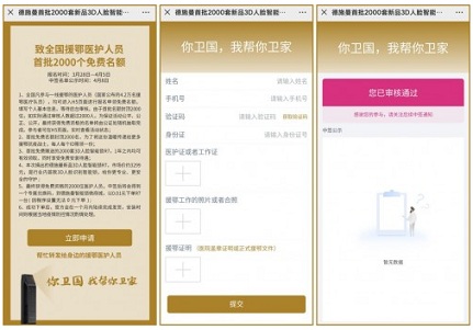 而從即日起,全國(guó)凡參與一線援鄂的醫(yī)護(hù)人員,均可進(jìn)入H5頁(yè)面進(jìn)行報(bào)名申領(lǐng)免費(fèi)名額,填寫(xiě)個(gè)人基本信息,等待后臺(tái)審核。由于首批名額封頂2000位,如實(shí)際通過(guò)審核人數(shù)超過(guò)2000人,為保證活動(dòng)公平、公正、公開(kāi),最終獲得免費(fèi)資格的名單將由公證處隨機(jī)抽取完成。參與者可在H5頁(yè)面,實(shí)時(shí)查看活動(dòng)狀態(tài)。