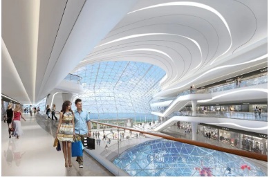 有幾個(gè)比較代表性的項(xiàng)目,比如海南的恒大;◢u國(guó)際購(gòu)物中心。提及海南,我們總會(huì)想到黎族、椰子、海風(fēng)、陽(yáng)光等元素,但是這個(gè)商業(yè)中心定位是國(guó)際免稅商業(yè)購(gòu)物城,基于此,我們將其定位趨于簡(jiǎn)約風(fēng)雅,構(gòu)筑成一個(gè)非常國(guó)際化的空間。