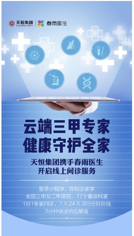 作為一家面向未來的城市運(yùn)營商,在后疫情時代,天恒集團(tuán)持續(xù)深化與春雨醫(yī)生合作縱深,加速線上優(yōu)質(zhì)醫(yī)療資源下沉,為業(yè)主及客戶打造7*24*365全時問診平臺——醫(yī)問通,以全程一站式健康服務(wù),令用戶最大化的享受春雨醫(yī)療資源所帶來的健康服務(wù)。