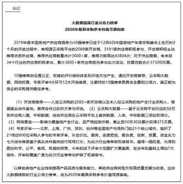 《2019年度中國(guó)房地產(chǎn)供應(yīng)商競(jìng)爭(zhēng)力10強(qiáng)行業(yè)報(bào)告》連載第六期
