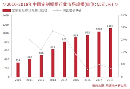 ⾏業(yè)內(nèi)定制化櫥柜越來越受歡迎。近⼏年消費(fèi)者個(gè)性化定制的需求催⽣了定制櫥柜的產(chǎn)⽣,定制櫥柜⾏業(yè)也保持持續(xù)穩(wěn)定增⻓的態(tài)勢(shì),由2010年的334.1億元增⾄2018年的1106.11億元,年均復(fù)合增⻓率超過18%。與之相關(guān)的,此外,全屋定制成為主流趨勢(shì),櫥柜企業(yè)拓展品類成為發(fā)展⽅向。近⼏年來,⼤數(shù)據(jù)、云計(jì)算不斷助⼒產(chǎn)業(yè)創(chuàng)新升級(jí),全屋定制異軍突起,以櫥柜為主營(yíng)業(yè)務(wù)的企業(yè)慢慢向其他品類拓展,增強(qiáng)⾃⾝競(jìng)爭(zhēng)能⼒。