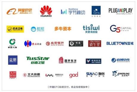 除了阿里巴巴外,眾多名企如字節(jié)跳動、老虎證券、臉臉科技、云鋒基金、G5 Capital、Plug&Play、多牛資本、天使灣創(chuàng)投、初橙、明德自動化、修正藥業(yè)、華為、北京銀行等,也均已進駐EFC。
