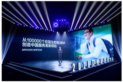 “直到今天,中國的第一代職業(yè)經(jīng)紀(jì)人依然在路上。我們希望在服務(wù)者這塊能提供更好的招募、培訓(xùn)、學(xué)習(xí)成長以及相應(yīng)的服務(wù)和支持,能夠讓整個(gè)中國的職業(yè)經(jīng)紀(jì)人再往前邁上一個(gè)新的臺(tái)階!迸碛罇|宣布,今年貝殼找房將推出10萬個(gè)應(yīng)屆生校招offer。同時(shí),面向整個(gè)平臺(tái)上的服務(wù)者推出更多的學(xué)習(xí)計(jì)劃,幫助服務(wù)者成長,包括平臺(tái)連接經(jīng)紀(jì)人全年5000萬小時(shí)學(xué)習(xí)計(jì)劃。