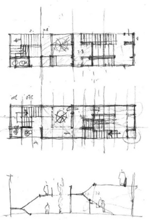 項(xiàng)目啟動(dòng)時(shí),體驗(yàn)中心整體建筑改造有一個(gè)問(wèn)題:它有兩個(gè)入口,一個(gè)是常規(guī)入口,一個(gè)是地下車庫(kù)經(jīng)電梯廳到達(dá)的入口,而兩個(gè)入口相距幾十米,不在同一個(gè)方向,無(wú)法實(shí)現(xiàn)常規(guī)售樓處的流線處理。