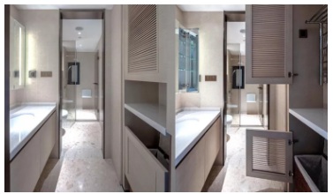 再比如說(shuō),衛(wèi)生間除了大家都知道的干濕分區(qū),我們也要考慮到毛巾的干燥、臟衣服的放置、洗手臺(tái)上化妝品的收納。此外,坐便器旁邊配高壓水槍,紙巾盒的處理等,同樣需要設(shè)計(jì)師花心思研究。