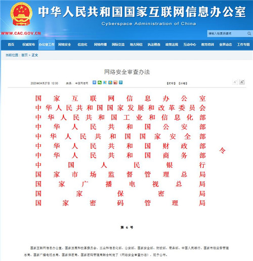 4月27日,國家互聯(lián)網(wǎng)信息辦公室、國家發(fā)展和改革委員會、工業(yè)和信息化部、公安部、國家安全部、財政部、商務(wù)部、中國人民銀行、國家市場監(jiān)督管理總局、國家廣播電視總局、國家保密局、國家密碼管理局共12個部門聯(lián)合發(fā)布《網(wǎng)絡(luò)安全審查辦法》,將于今年6月1日起實(shí)施。