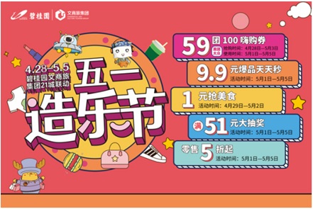 4月28日,“五一造樂節(jié)”活動將正式拉開帷幕,文商旅集團整合旗下三大在營購物中心:佛山碧樂時光·新翼,沈陽銀河商業(yè)廣場以及南京碧桂園歡樂城共同推出聯(lián)合大促活動,為三地消費者提供一檔全項目聯(lián)動、全國統(tǒng)一主題與內(nèi)容的大力度促銷優(yōu)惠。這是文商旅集團首次聯(lián)動跨城跨區(qū)域的全國在營商業(yè)項目舉辦品牌營銷活動,在行業(yè)內(nèi)也勢必引爆市場關(guān)注。