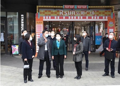 黃莉新(左三)一行調(diào)研走訪南京弘陽(yáng)廣場(chǎng)