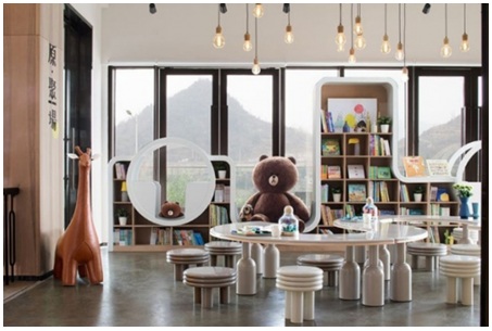 基于東原產(chǎn)品的三大板塊定位,則靈規(guī)劃了咖啡烘焙、閱讀沙龍、親子娛樂等多元主題空間。在視覺美感與部品選用上,他們根據(jù)對用戶體驗的研究,采用了自然環(huán)保、趣致實用、美好明媚的材料與形制。就座區(qū)的設(shè)計在保證自由交談的同時,又有相對平衡的圍合度與私密性,以便參與活動或個人休息狀態(tài)的切換自如。