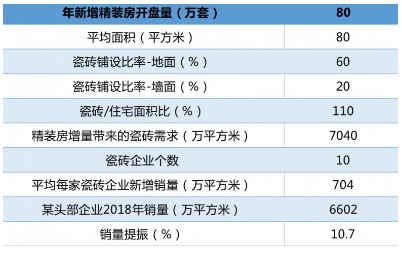 (公開數(shù)據(jù):精裝房增量對瓷磚企業(yè)銷量提振測算)