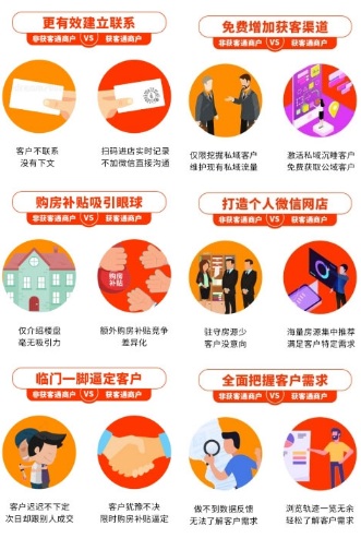 據(jù)統(tǒng)計,93.2%的成交客戶跟經(jīng)紀人是微信好友關(guān)系,微信生態(tài)產(chǎn)品的賦能可以方便獲取用戶的瀏覽軌跡生成畫像,微信是跟進客戶的主陣地,也是經(jīng)紀人最大的蓄客池。私域成為資金成本最少、轉(zhuǎn)化成交最多的最佳營銷領(lǐng)域。