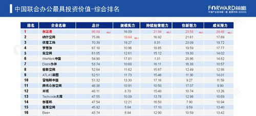 其中,創(chuàng)富港獲得16.09分,位列第四位。《榜單》顯示,規(guī)模實(shí)力上,納什空間、優(yōu)客工場(chǎng)和 We Work中國(guó)排名行業(yè)前三。