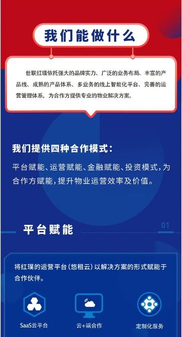 世聯(lián)紅璞依托強(qiáng)大的品牌實力、廣泛的業(yè)務(wù)布局、豐富的產(chǎn)品線、成熟的產(chǎn)品體系、多業(yè)務(wù)的線上智能化平臺、完善的運(yùn)營管理體系,為合作方提供專業(yè)的物業(yè)解決方案。