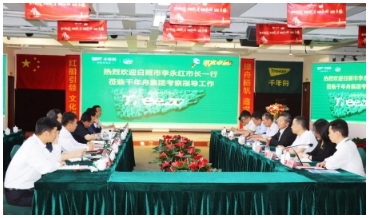 5月17日下午,山東省日照市市委副書記、市長李永紅一行蒞臨千年舟集團考察指導(dǎo)工作。市政府黨組成員、秘書長黃秀芹,市政府辦公室副主任李平,市發(fā)改委、商務(wù)局、投資促進服務(wù)中心等相關(guān)部門負責(zé)人及嵐山區(qū)相關(guān)領(lǐng)導(dǎo)參加。集團董事長陸銅華、副總裁陳衛(wèi)、顧問於成榮、副總裁田茂華、副總裁馬同華、日照澳思柏恩公司總經(jīng)理毛善鋒等予以了熱情接待,李市長一行參觀了千年舟科技文化創(chuàng)意園,雙方進行了友好交流與座談。