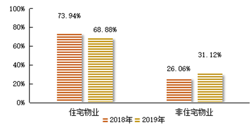 圖:2018-2019年百強企業(yè)住宅和非住宅業(yè)態(tài)的管理面積占比情況