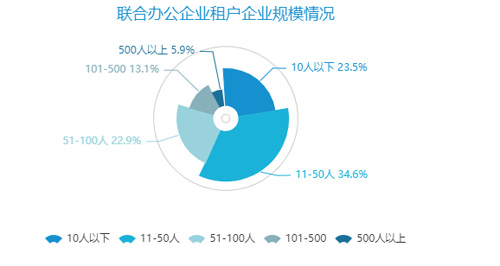 另一方面,從入駐聯(lián)合辦公的租戶構(gòu)成來看,中小型企業(yè)屬群仍占據(jù)了重要位置。數(shù)據(jù)顯示,50人以下的小微形企業(yè)租戶占比達(dá)到58.1%,而近來越發(fā)被重視的大中型企業(yè)客戶屬群占比卻僅為19%。租戶的結(jié)構(gòu)比重失衡使得聯(lián)合辦公企業(yè)在這次市場沖擊中所受到的影響更為明顯。