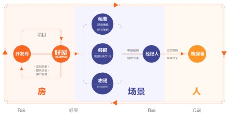 在人工智能、大數(shù)據(jù)挖掘技術(shù)的支持下,好屋在開發(fā)商、房產(chǎn)經(jīng)紀(jì)機(jī)構(gòu)和購(gòu)房者之間,搭建起了一個(gè)全交易流程線上化、商業(yè)價(jià)值可視化的生態(tài)閉環(huán),把買方、賣方和服務(wù)方三方聚集在一起,不斷拓展上下游產(chǎn)業(yè)鏈,并嫁接智慧社區(qū)、智能家居、家政服務(wù)、供應(yīng)鏈金融等增值服務(wù),最終構(gòu)建優(yōu)質(zhì)穩(wěn)定的房地產(chǎn)交易生態(tài)圈。