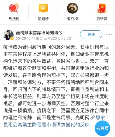 自如在6月28日回應(yīng)稱,目前所有業(yè)主都在按時(shí)打款;確有個(gè)別合約在和業(yè)主友好協(xié)商溝通優(yōu)化,也是受疫情空置、商區(qū)變更等因素,出現(xiàn)了收出倒掛趨勢(shì)做出的調(diào)整,但都會(huì)最大程度保障業(yè)主權(quán)益,按照合同約定友好協(xié)商。對(duì)此,律師稱,業(yè)主與長(zhǎng)租機(jī)構(gòu)是利益共同體,疫情影響需共商共擔(dān)。