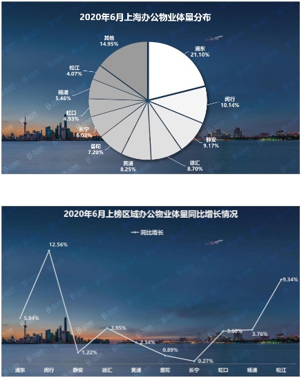 根據(jù)辦辦網(wǎng)大數(shù)據(jù)統(tǒng)計,上榜的10個區(qū)域內(nèi)集中了全市85.05%的辦公物業(yè)體量,其中浦東的辦公物業(yè)總體量最多,占比高達(dá)21.10%,而閔行的辦公物業(yè)體量增長最快,同比去年6月增長12.56%。