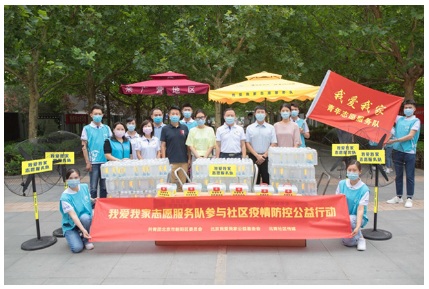 (圖為我愛我家為北緯40度小區(qū)捐贈防疫防暑物資)