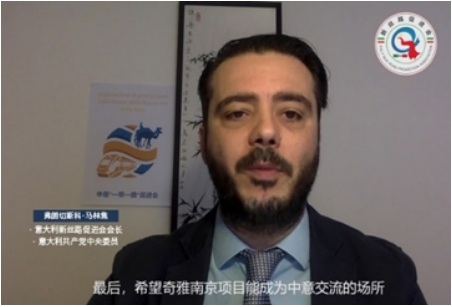 現(xiàn)場(chǎng)連線意大利新絲路促進(jìn)會(huì)會(huì)長(zhǎng)、意大利共產(chǎn)黨中央委員——弗朗西斯科·馬林焦,作為8萬多家意大利私營(yíng)企業(yè)的代表,他表示;“奇雅南京項(xiàng)目作為與意大利新絲路促進(jìn)會(huì)合作的起點(diǎn),中意合作的載體之一,在時(shí)尚、美食、汽車、家居等相關(guān)意大利產(chǎn)業(yè)的引進(jìn)方面做出了承諾,新絲路促進(jìn)會(huì)作為一帶一路會(huì)員理事會(huì)單位,我們則責(zé)無旁貸的給予支持!