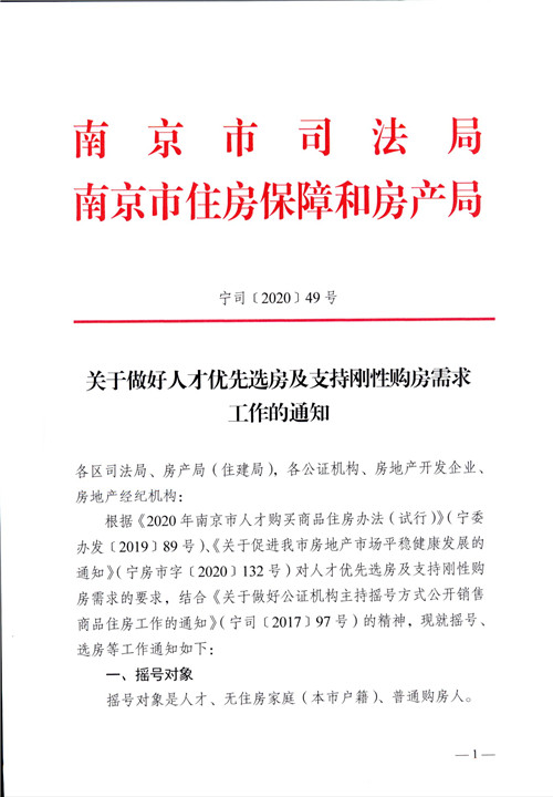 7月28日,江蘇省南京司法局、南京住房保障和房產局聯(lián)合發(fā)布《關于做好人才優(yōu)先選房及支持剛性購房需求工作的通知》,針對人才優(yōu)先選房、支持剛需優(yōu)先購房等事宜,發(fā)布搖號、選房的具體細則。
