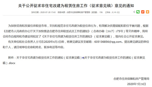 為加快培育和發(fā)展住房租賃市場,支持和規(guī)范非住宅改建為租賃住房行為,有效解決供需錯(cuò)配和職住平衡問題,根據(jù)國務(wù)院辦公廳《關(guān)于加快培育和發(fā)展住房租賃市場的若干意見》(國辦發(fā)〔2016〕39號)、住房和城鄉(xiāng)建設(shè)部等6部門《關(guān)于整頓規(guī)范住房租賃市場秩序的意見》(建房規(guī)〔2019〕10號)和《合肥市人民政府辦公廳關(guān)于加快推進(jìn)合肥市住房租賃試點(diǎn)工作的通知》(合政辦秘〔2017〕175號)等文件精神,結(jié)合我市實(shí)際,現(xiàn)就允許部分非住宅存量用房改建為租賃住房有關(guān)事項(xiàng)通知如下: