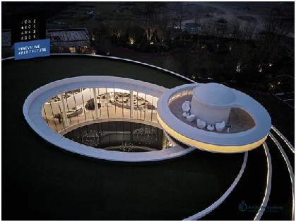 「海灣•金茂悅展示中心」位于寧波市北侖區(qū)沿海區(qū)域,齊越設(shè)計打破網(wǎng)格版的城市輪廓,以柔和優(yōu)美的曲線勾勒空間框景,引導(dǎo)用戶將視線聚焦在空間上部,結(jié)合現(xiàn)代簡潔的設(shè)計風(fēng)格,展現(xiàn)出一種多維的城市力量。齊越設(shè)計用超現(xiàn)實的設(shè)計手法打造了一座似時空穿越而來的神秘飛碟,作為示范區(qū)及社區(qū)文化展示使用,以極具標(biāo)志性的建筑形體激發(fā)新區(qū)活力。