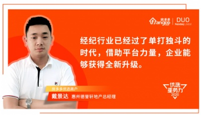 惠州德譽(yù)軒實(shí)業(yè)有限公司,成立于2016年,精耕惠州仲愷區(qū)域并創(chuàng)下了不俗的成績(jī)。而德譽(yù)軒掌門人戴景達(dá)卻是一位90后,因不想過(guò)著一眼就能望到未來(lái)平淡如水的打工生活,他憑借一腔熱情白手起家,從最開(kāi)始的不服輸?shù)教幪幣霰谠俚劫F人相助,戴景達(dá)在沉浮中找到了方向和自信,在互聯(lián)網(wǎng)時(shí)代下,借助房多多平臺(tái)力量,在惠州房地產(chǎn)界正闖出一片屬于自己的天地。