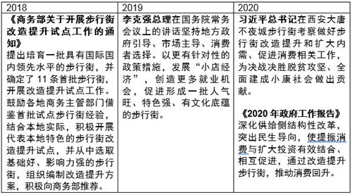 7月9日戴德梁行正式發(fā)布《2020商業(yè)步行街改造提升白皮書》。2020年5月22日,中國國務(wù)院總理李克強在十三屆全國人大三次會議上作《2020年國務(wù)院政府工作報告》,報告中涵蓋深化供給側(cè)結(jié)構(gòu)性改革,突出民生導(dǎo)向,使提振消費與擴大投資有效結(jié)合、相互促進,通過改造提升步行街,推動消費回升。