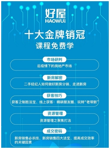 據(jù)悉,好屋“成長管家”首期推出十大金牌銷冠系列課程,課程內(nèi)容涉及市場、獲客、銷售、成交等房產(chǎn)銷售各個環(huán)節(jié)內(nèi)容,在幫助經(jīng)紀人打通與C端客戶的溝通壁壘,強化專業(yè)能力、提高效率實現(xiàn)協(xié)同的同時,幫助他們更好地滿足客戶在大數(shù)據(jù)時代的更精準、更多元的房產(chǎn)服務需求。