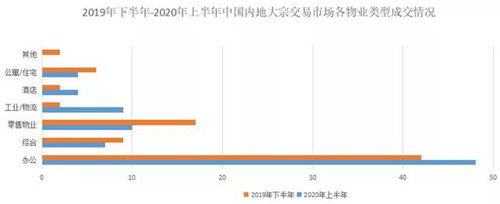 細(xì)分來看,2020年上半年辦公物業(yè)成交宗數(shù)為48宗,較2019年下半年增加了6宗,熱度明顯上升。與之相對應(yīng)的,工業(yè)/物流類物業(yè)為10宗,較上年下半年減少了7宗。