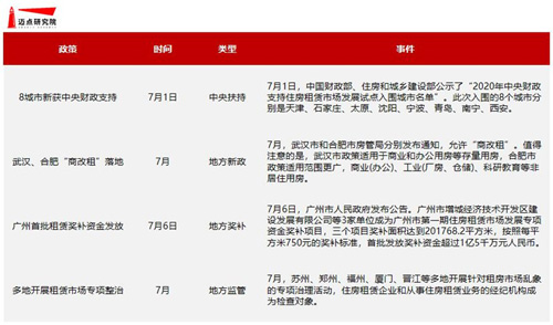 本月多個城市住房租賃新獲中央財政支持、首宗集體土地長租公寓項目入市、多品類長租公寓品牌新項目迎客、租金與成交量持續(xù)回暖。而且7月多地政策密集出臺,天津、石家莊、太原、沈陽、寧波、青島、南寧和西安成為中央財政支持住房租賃市場發(fā)展的試點城市;武漢與合肥落地“商改租”政策;廣州發(fā)放首筆1.5億元人民幣的租賃獎補金;蘇州、鄭州、福州、廈門等多地開展針對租房亂象的專項治理活動,對此,品牌公寓與中介機構更應該堅守底線、做好服務。