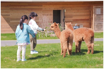 (圖:莫干山森泊萌寵樂園,兒童在喂羊駝)