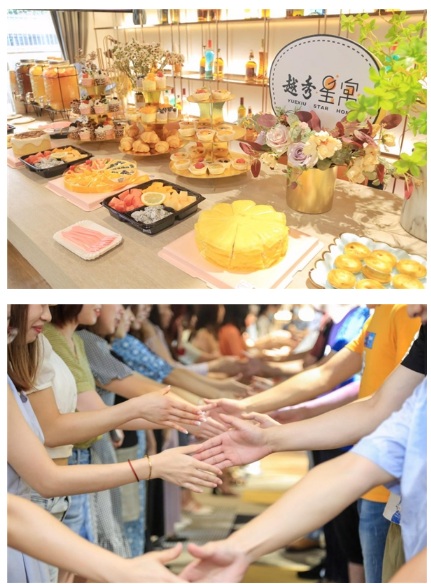 在荔灣花海門店,越秀星寓準(zhǔn)備了美味自助晚餐茶歇,邀請門店租客及他們的伙伴共同參加;顒蝇F(xiàn)場安排了聽歌識曲、你畫我猜、害你在心口難開等互動環(huán)節(jié),這些游戲?yàn)楝F(xiàn)場青年租客制造了相互認(rèn)識、加深了解的機(jī)會,全場氣氛溫馨而活躍。于此同時(shí),活動現(xiàn)場更是準(zhǔn)備了生日蛋糕,為八月過生日的租客帶去生日祝福。