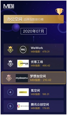 8月26日,邁點(diǎn)研究院發(fā)布最新一期《辦公空間品牌發(fā)展報(bào)告》。報(bào)告指出,夢(mèng)想加穩(wěn)居辦公空間品牌影響力榜單前三,其中,搜索指數(shù)單維度排名為榜單首位。