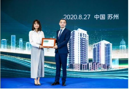 BRE中國總經(jīng)理李倩(左)向朗詩綠色生活總經(jīng)理吳旭(右)頒發(fā)證書