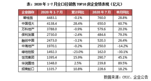 來(lái)自研究機(jī)構(gòu)的統(tǒng)計(jì)數(shù)據(jù)顯示,7月單月,百?gòu)?qiáng)房企銷售業(yè)績(jī)同比增速自4月轉(zhuǎn)正后逐月回升至25.7%,1-7月整體業(yè)績(jī)同比增長(zhǎng)2.7%,自年初以來(lái)增速首次轉(zhuǎn)正,已有18家房企銷售額超千億。不僅銷售力度未松懈,而且二三梯隊(duì)拿地?zé)崆椴粶p,前7月拿地銷售比超過(guò)0.5,濱江更是高達(dá)1.26。