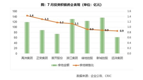 7月,不僅銷售力度未放松,而且二三梯隊(duì)房企為沖規(guī)模拿地?zé)崆椴粶p。