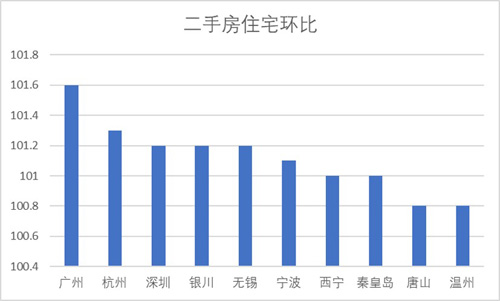 圖2:7月二手房住宅環(huán)比漲幅前十名城市