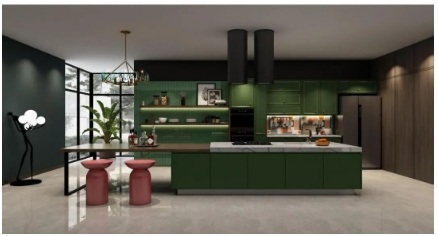 千年舟全屋定制巴伊亞風(fēng)情系列,綠色與淺胡桃搭配,加以金色點(diǎn)綴,高濃度色彩的碰撞,透露著神秘、夢幻。整個(gè)搭配新潮,富有高級感。柜體采用淺胡桃色,抽面和門板搭配啞光混油/巴伊亞皮紋,免漆嵌金屬線條,功能區(qū)尺寸比例規(guī)范,布局合理,儲(chǔ)藏性、舒適性、空間性均滿足日常功能需求。護(hù)墻和木門根據(jù)柜門搭配,整個(gè)空間更整體。