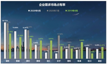 上榜各區(qū)企業(yè)需求市場占有率表現(xiàn)不一 黃浦環(huán)比增長顯著