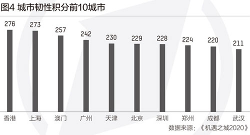 今年的報告,在變量設置上更加強調(diào)城市高質(zhì)量發(fā)展的內(nèi)容,例如城市韌性、可持續(xù)發(fā)展、區(qū)域一體化發(fā)展、城市精細化管理等!俺鞘许g性”是報告今年重點觀察的維度。香港、上海、澳門、廣州、天津,在這一維度中位列前五。