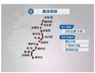 贛深高鐵北起贛州市贛州西站,終抵深圳市深圳北站。待到2021年贛深高鐵通車之時(shí),贛州至深圳乘坐火車時(shí)間將由現(xiàn)在的7小時(shí)壓縮至2小時(shí)。