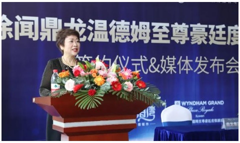鼎龍集團(tuán)酒店管理事業(yè)部副總裁朱永佳先生代表集團(tuán)致辭,表示非常榮幸和溫德姆至尊豪廷品牌方簽訂合同,打造徐聞鼎龍溫德姆至尊豪廷度假酒店。