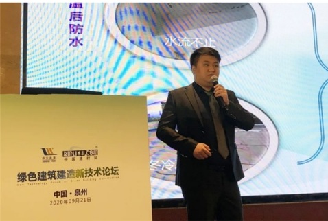 卓寶工程技術部經理周明介紹“貼必定+涂必定”防水服務系統(tǒng)