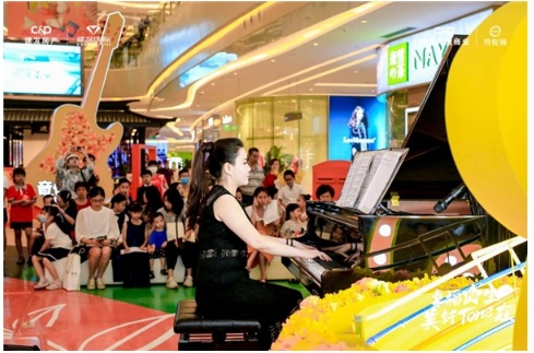 一場(chǎng)音樂盛會(huì),當(dāng)然少不了量身定制的造樂大趴,9月18至20日,連續(xù)三天,本地潮流音樂組合、雪碧潮音節(jié)、網(wǎng)紅樂隊(duì)輪番上陣,更有分布各樓層的小提琴、尤克里里、手風(fēng)琴組成的音樂快閃互動(dòng),以及馬巴林、鋼琴演出,潮流與古典碰撞、融會(huì)貫通,引發(fā)顧客駐足觀看,形成拍照熱潮。